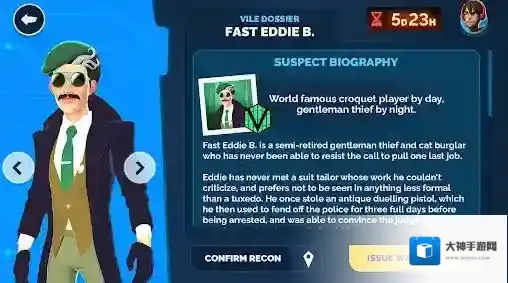 3、将您收集的信息与ACME的记录数据库进行比较,以确定每起犯罪背后的VILE特工。限制嫌疑人数量,并为合适的罪犯发出逮捕令。