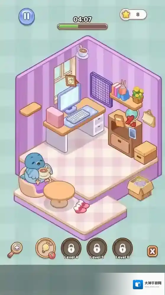 4、每关都会有不同的时间限制,在有限的时间内放置所有家具就可以通关。