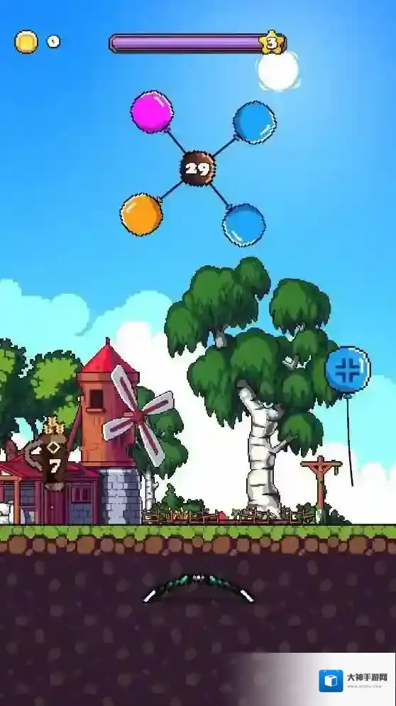 3、关卡里的气球会按照不同的方式进行转动,把握好时机发射弓箭来击破气球,击破气球可以增加闯关时间。
