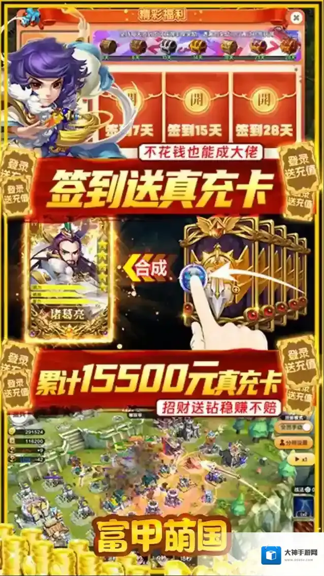 富甲萌国(科技特权真充)是一款集养成于策略一体的三国卡牌游戏。上线送神级武将,海量材料免费拿, 通过对自身武将的培养,宝石、装备等一系列增加战斗力物品的收集,在不同势力的对战中可以通过武将、 兵种、团队配合进行战斗,充分发挥大家的谋策战略,拥有不一样的游戏体验。从而逐渐成长为一位可以 影响大局的存在,一统三国指日可待。