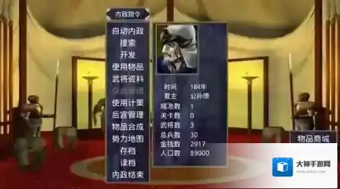1、内政经营需精细,每年一月进入内政模式,通过执行搜索、开发指令提升城市实力,合理分配武将任务。