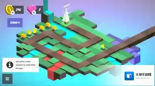 3、游戏过程中,收集金币、粉钻,在路径关键位置补建塔,还可给武器加【perks】增强战力。