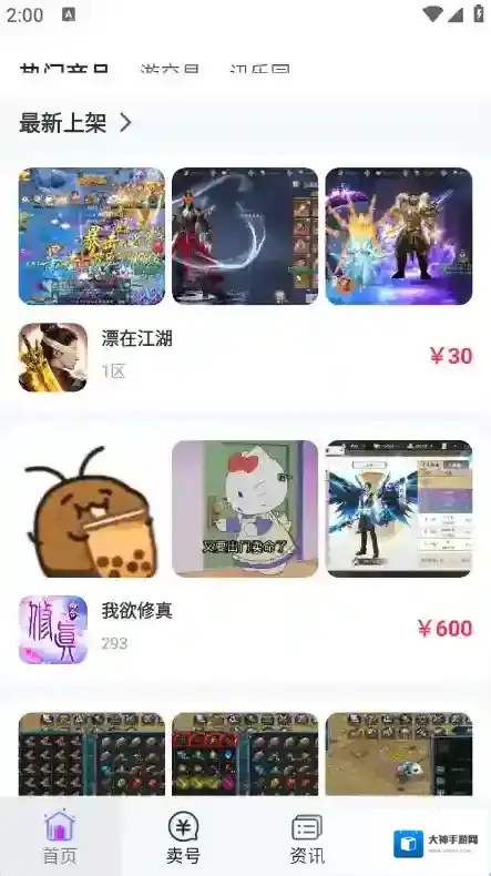 2、首页为玩家提供了很多的热门游戏账号。