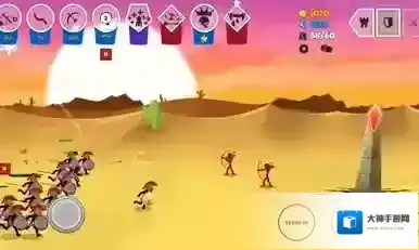 2、开局先召唤矿工和弓箭手,矿工优先采集金块,当瓦拉斯纳出现后全部回撤,躲过从天而降的招式后让阿特尤斯上去打,然后部分弓箭手在后面输出。