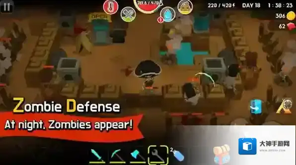 夜晚来临的时候,会有僵尸来袭击我们的基地,所以必须要拿出武器来战斗,保护好自己的基地建筑。